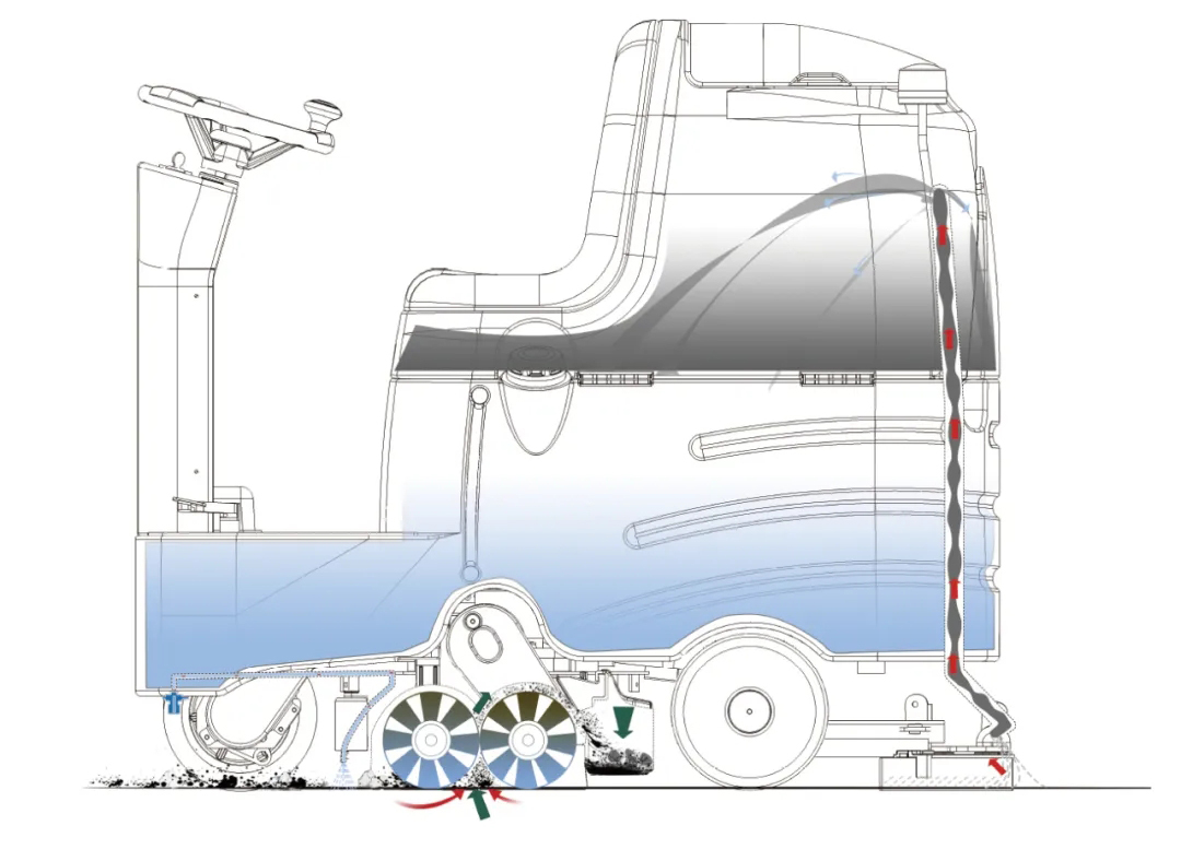 雙刷聯(lián)動(dòng),可調(diào)清掃壓力,貼合凹凸表面,確保清掃密度,解決縫隙深處垃圾。