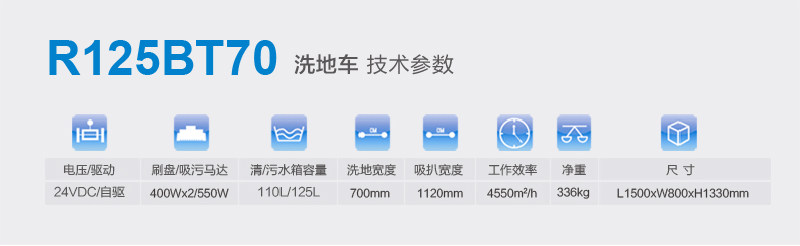 R125BT70駕駛式洗地車,一款擁有“高清洗效率”的品質(zhì)洗地車。通過實(shí)踐,其效率相當(dāng)兩臺(tái)大型手推式洗地機(jī)?;匦睆叫?,在狹窄的區(qū)域內(nèi)也有很好的機(jī)動(dòng)性。輕松通過90厘米寬度的門道。