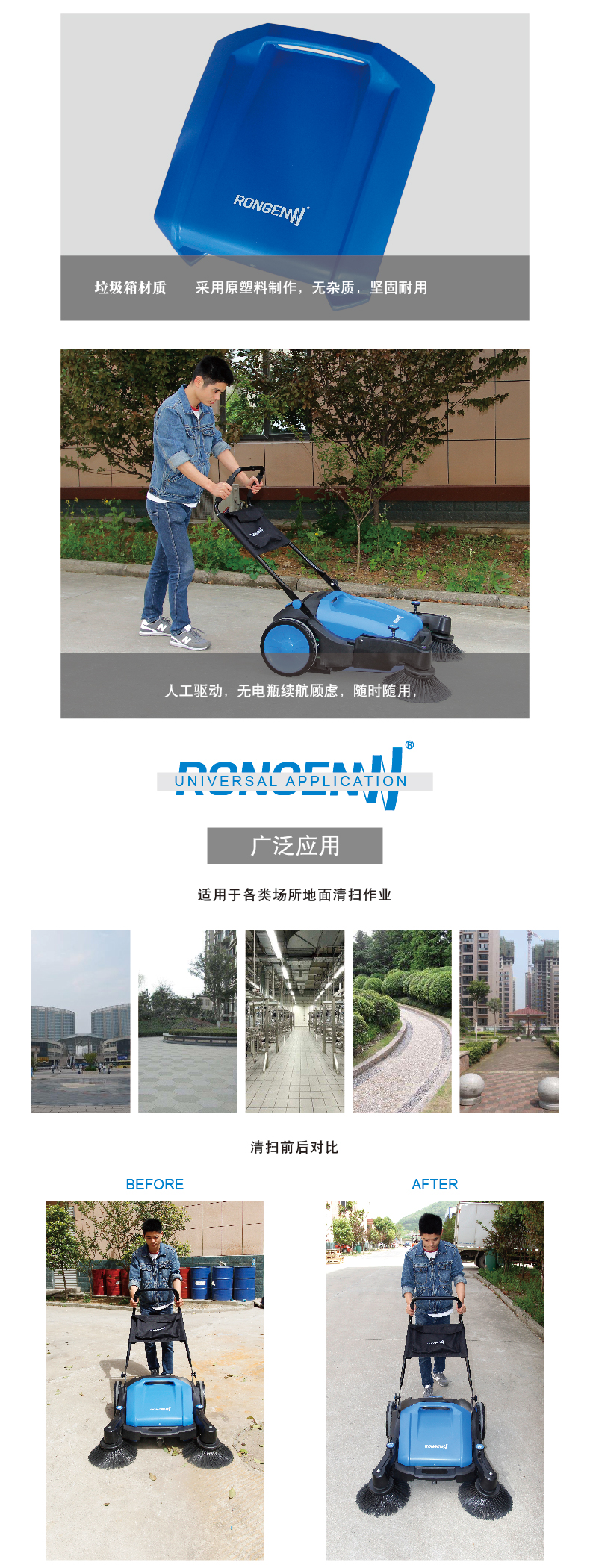 掃地機(jī)已經(jīng)被很多的企業(yè)認(rèn)可,隨著我們國(guó)家的科技水平越來(lái)越發(fā)達(dá),掃地機(jī)慢慢的走進(jìn)了車間、廠房、停車場(chǎng)、物業(yè)小區(qū)等大型場(chǎng)地中。容恩掃地機(jī)就是順應(yīng)時(shí)代而來(lái),容恩掃地機(jī)完美解決臟亂不堪的地面,輕輕一推輕松完成工作,不僅如此容恩掃地機(jī)使用起來(lái)簡(jiǎn)單方便,人工操作起來(lái)也十分的容易,讓原本繁重很累的保潔工作很輕松,即使是年近花甲的老人也能夠輕松使用。