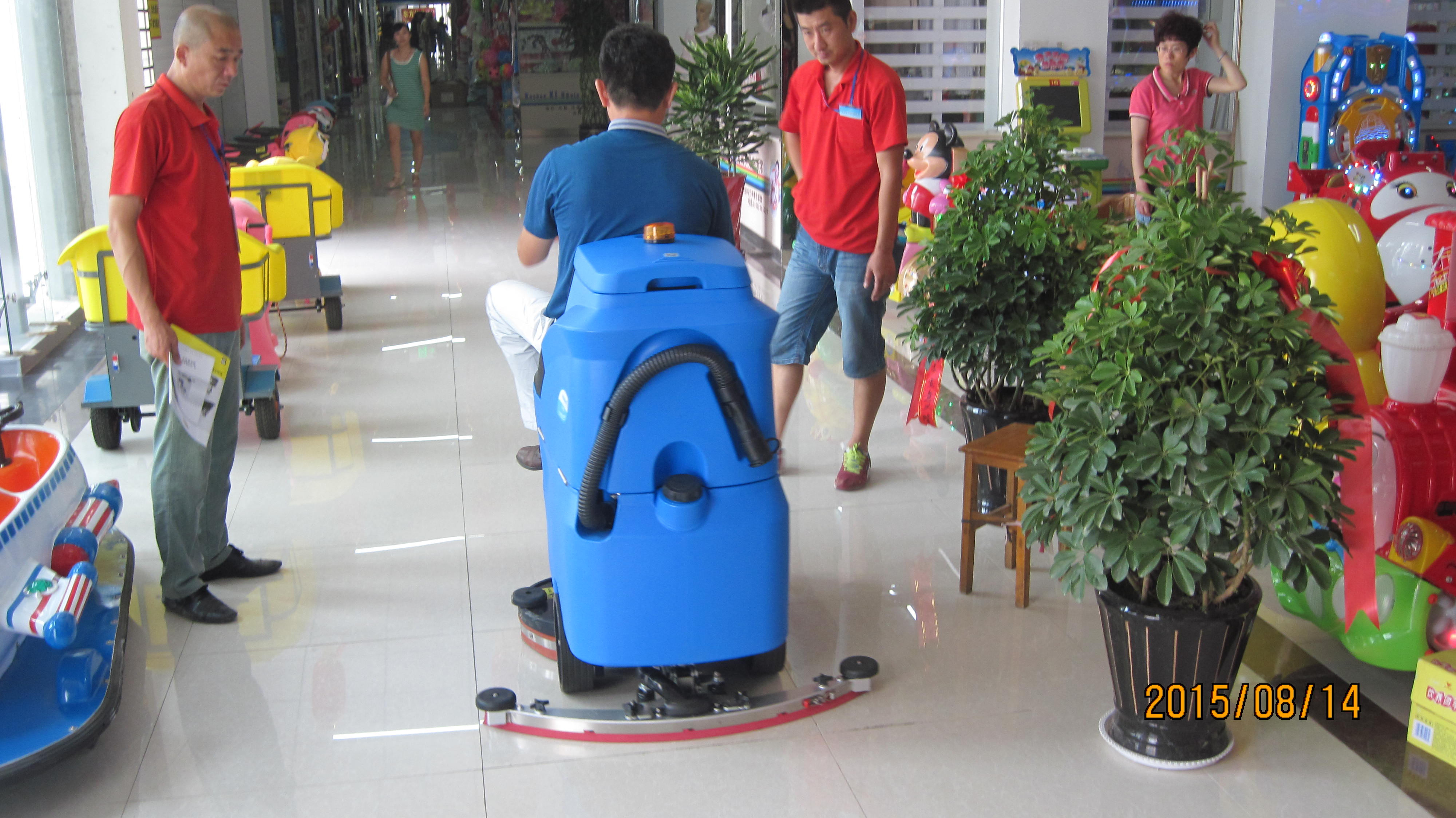 購(gòu)物商場(chǎng)一般面積都非常大,每天都需要做清潔,如果用人工來(lái)清潔,需要很多人力;購(gòu)物商場(chǎng)地面主要是細(xì)沙、細(xì)土、灰塵、油污等,如果用塵推來(lái)清潔,只能把表面的細(xì)沙、細(xì)土和灰塵清除掉,但是很難把深層的污漬清洗掉;如果用濕拖把來(lái)拖,地上會(huì)殘留有水分,影響購(gòu)物商場(chǎng)行車(chē)的安全。但是安徽容恩使用駕駛式洗地機(jī)對(duì)購(gòu)物商場(chǎng)進(jìn)行清洗是一種好的選擇。人可以坐在上面開(kāi),操作非常輕松,它放水、洗地和吸水一步完成,不僅能把購(gòu)物商場(chǎng)地面主要是細(xì)沙、細(xì)土和灰塵清洗干凈,而且還能對(duì)深層的污漬清洗。清洗過(guò)后能把污水回收到機(jī)器里,地上不會(huì)留下水分。駕駛式洗地機(jī)每小時(shí)能清洗5000多平方米的地面,清洗效率高,為購(gòu)物商場(chǎng)減少人工成本。