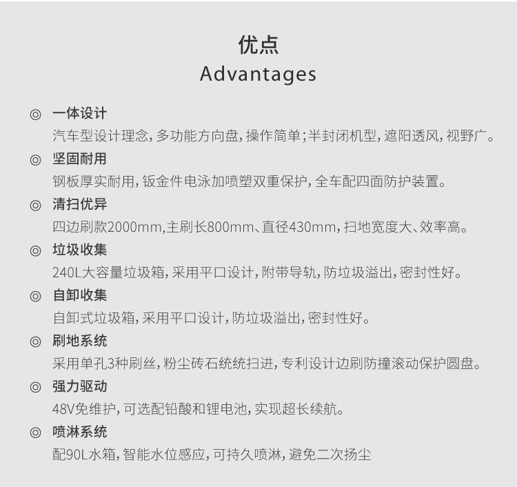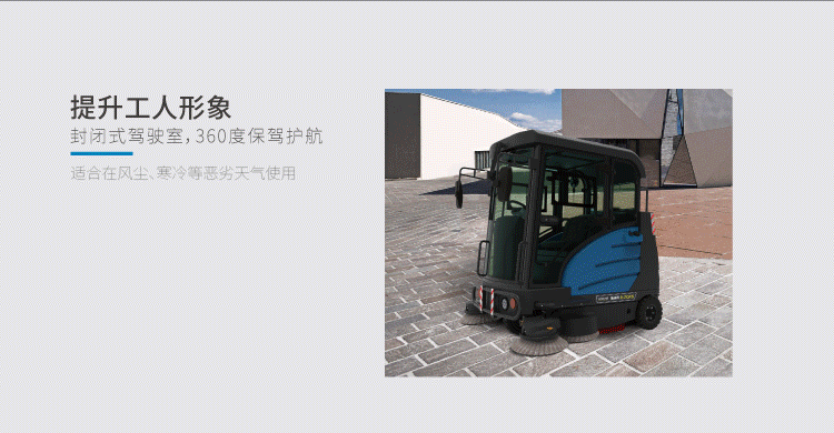 用途:容恩驍騎兵掃地車,專為室外復(fù)雜清掃環(huán)境設(shè)計(jì)。封閉式駕駛室,舒適,安全,適合在雨天、寒冷、風(fēng)塵等惡劣天氣環(huán)境下使用。